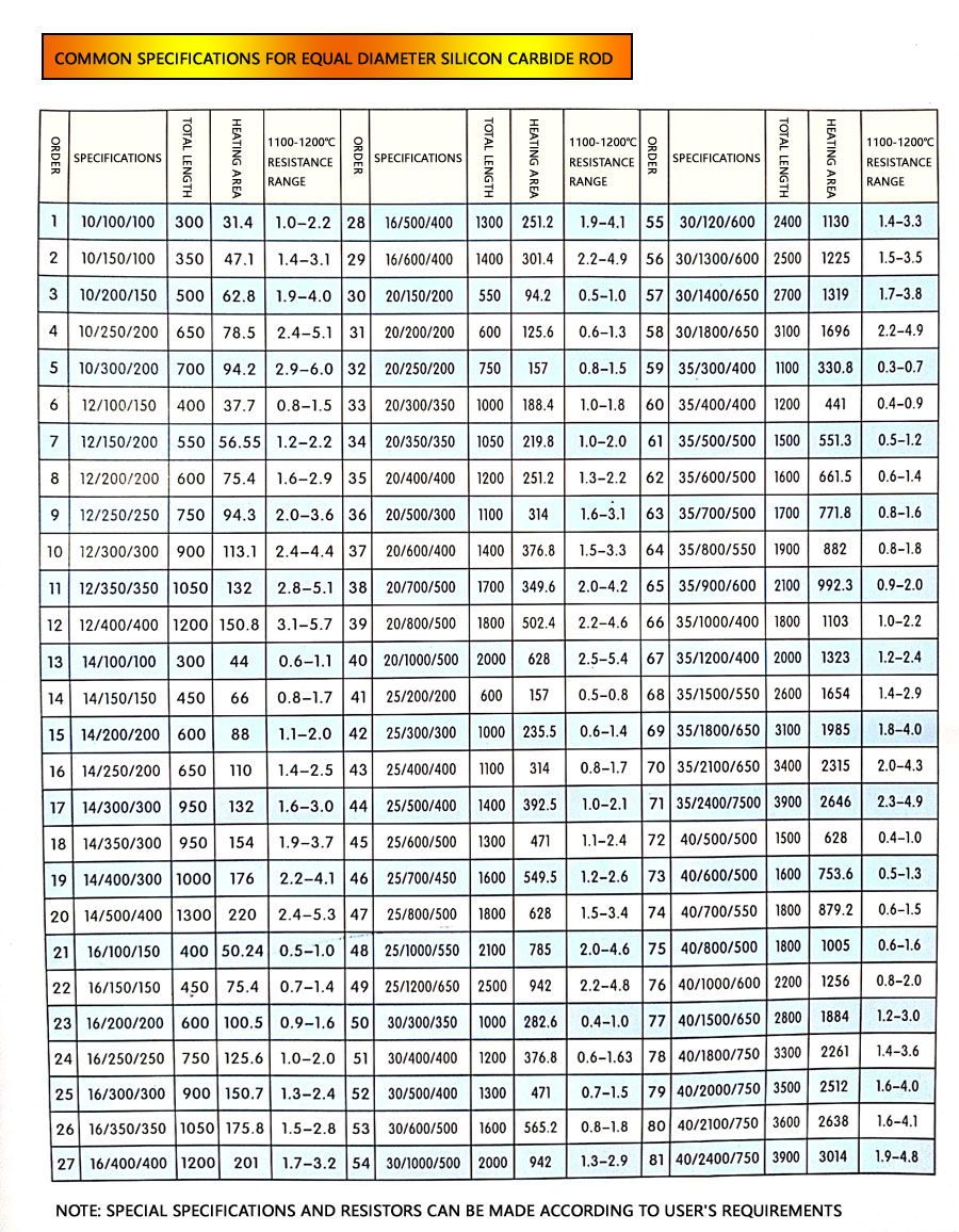 Common Specifications for Equal Diameter Silicon Carbide Rod